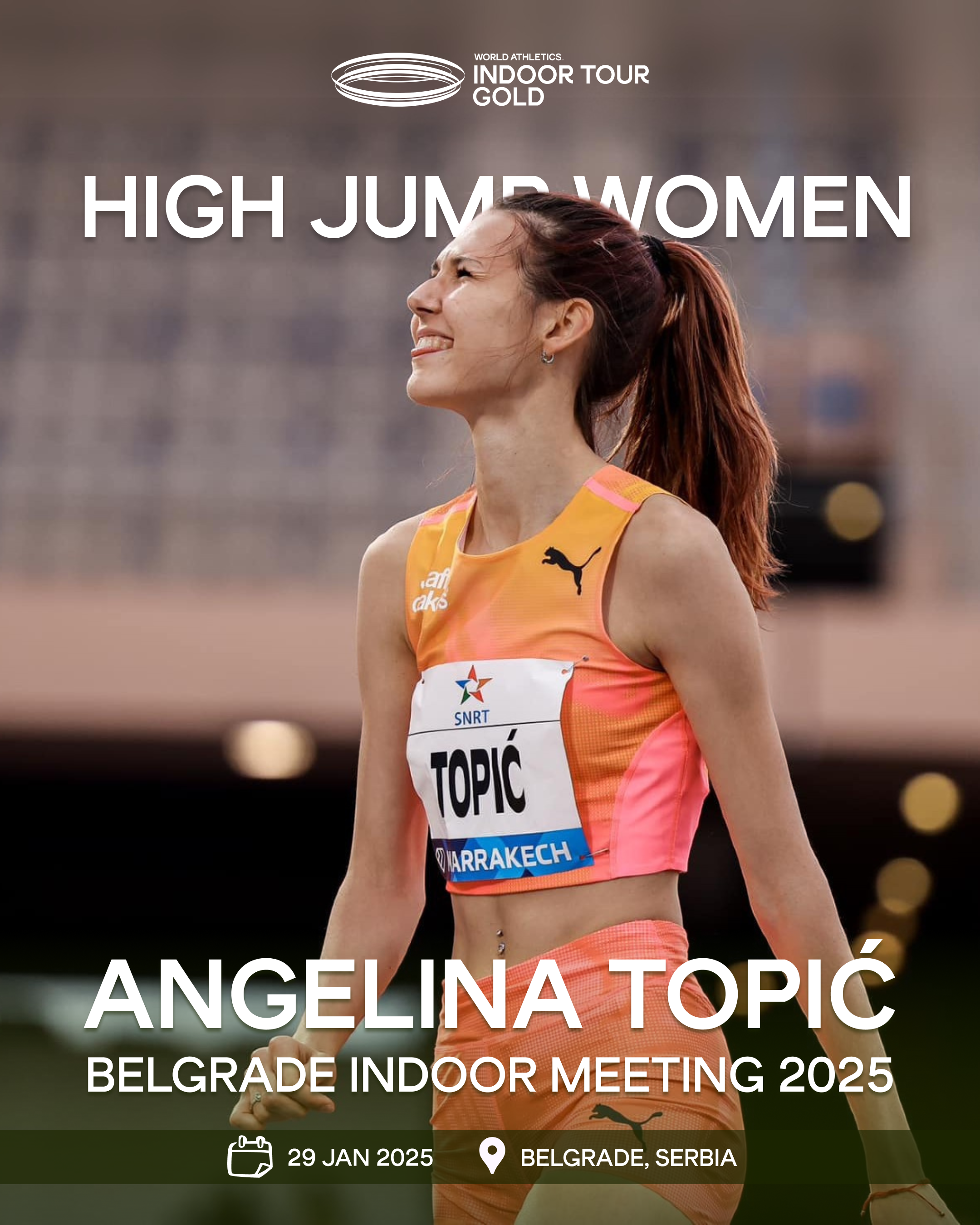 Beograd, Srbija – Pripreme za spektakularni jubilarni 10. Belgrade Indoor Meeting su u punom jeku! Srpska senzacija u skoku uvis, Angelina Topić, potvrđena je kao učesnica na prestižnom Belgrade Indoor Meeting-u, koji će se održati 29. januara 2025. godine u Atletskoj dvorani na Banjici.